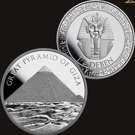 • Obverse: Features the Great Pyramid of Giza, a legendary 4,500-year-old structure built in ancient Egypt, famous for its breathtaking size, structure and architectural longevity.