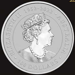 All coins from the 2023 Australian Kangaroo Bullion Coin Series portray the official ‘Queen Elizabeth II Memorial Obverse’, featuring the Jody Clark effigy supplemented with the dates of Her Majesty’s reign – ‘1952 – 2022’.