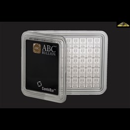 Each tablet showcases the signature ABC Bullion square ingot logo repeated diagonally across the obverse side.