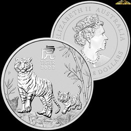AUSTRALIAN LUNAR SERIES III 2022 YEAR OF THE TIGER SILVER BULLION COINS.