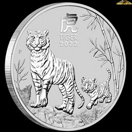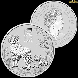 AUSTRALIAN LUNAR SERIES III 2022 YEAR OF THE TIGER SILVER BULLION COINS.