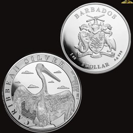 Limited mintage of 10,000 coins. This bullion Silver coin issued by the country of Barbados features one of the icons featured in the Barbados Coat of Arms, the pelican.