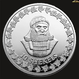• Reverse: Displays an effigy of King Hammurabi, the famous Babylonian king. The round carries a denomination of 10 Shekel